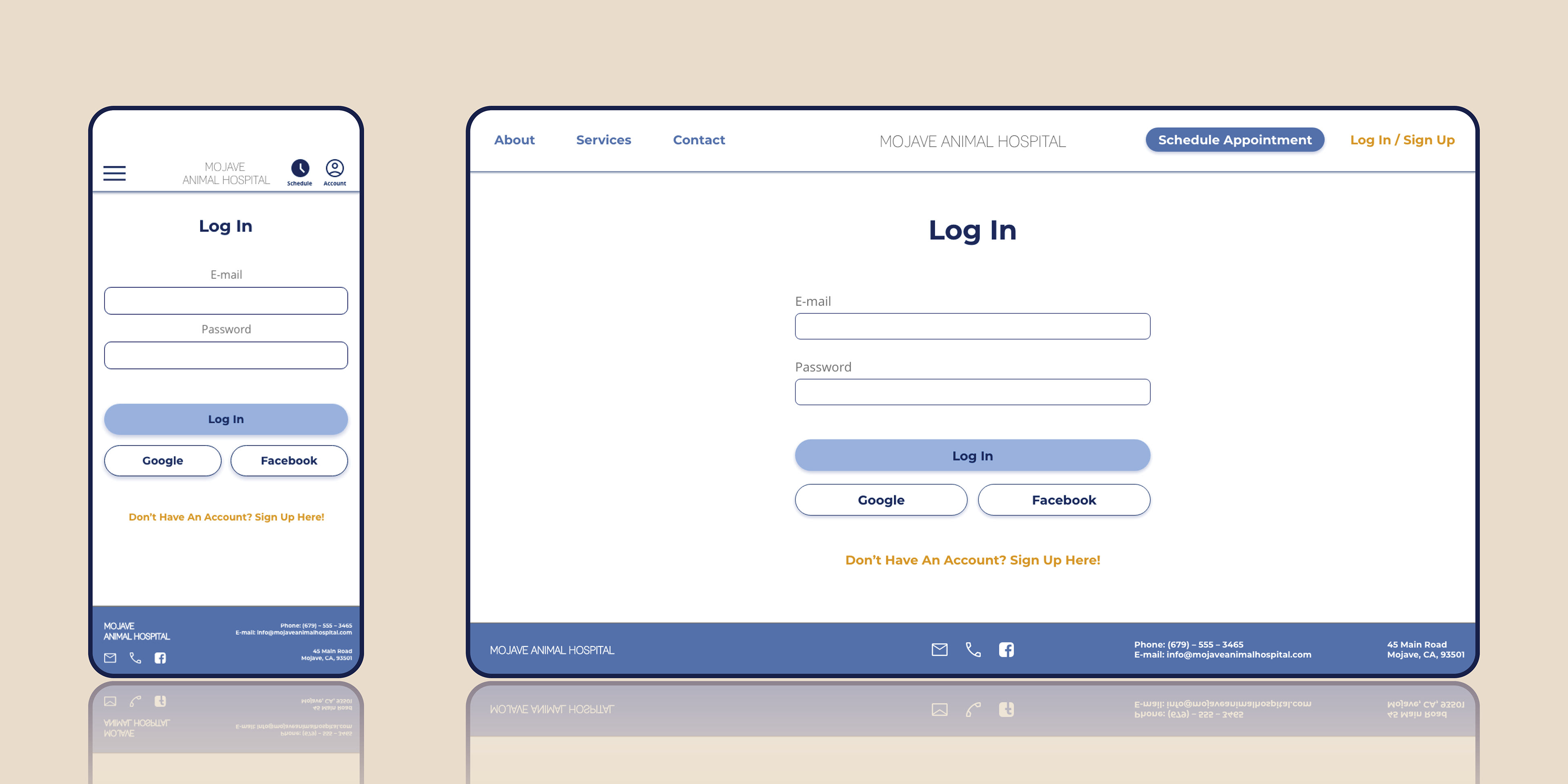 This is a website for Mojave Veterinary Hospital, that provides information about the hospital and options to schedule and reschedule appointments. The website was designed as an adaptable one with a desktop and a mobile version.